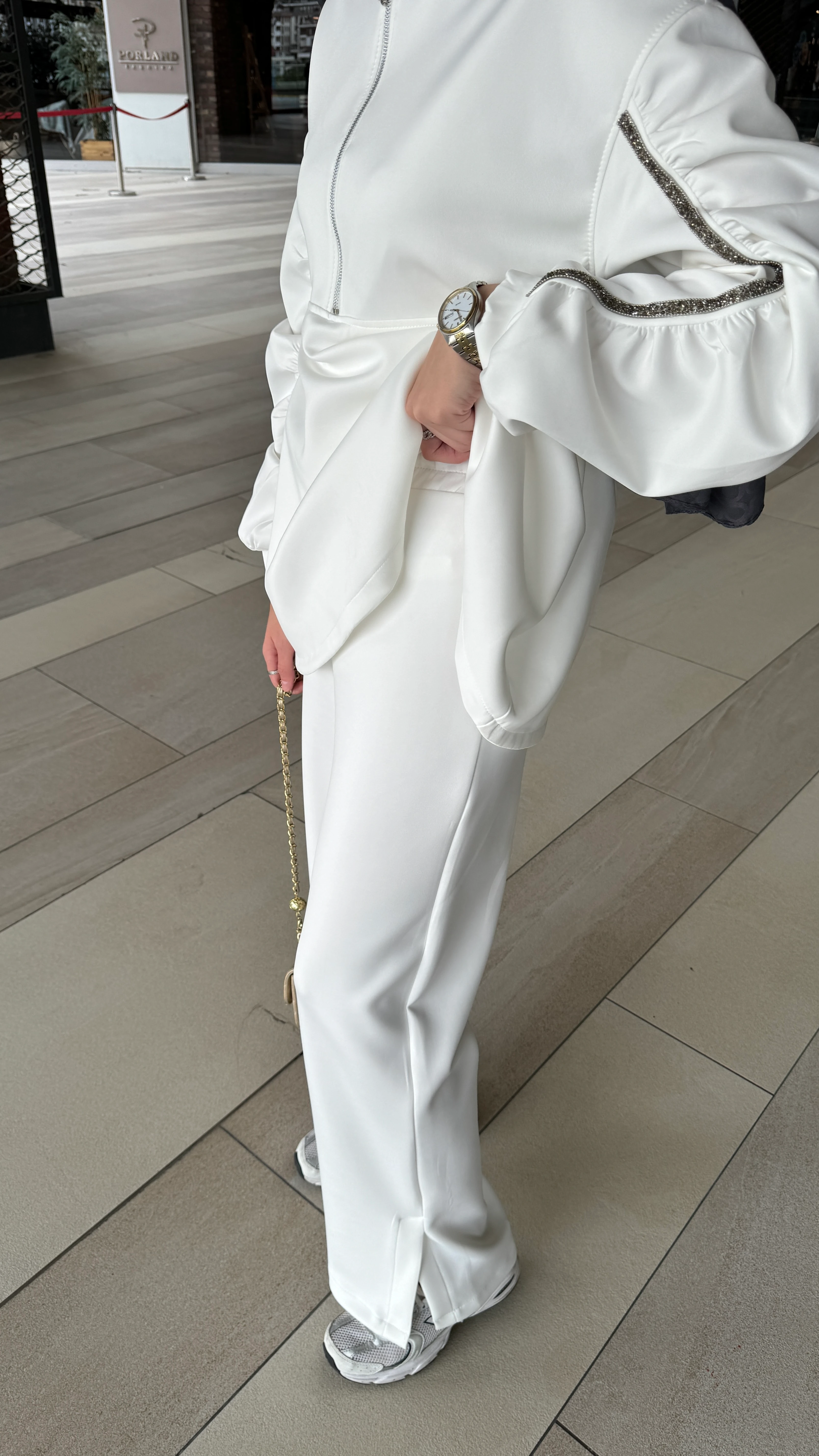 Yandan Yırtmaç Detaylı Pantolon - Bej